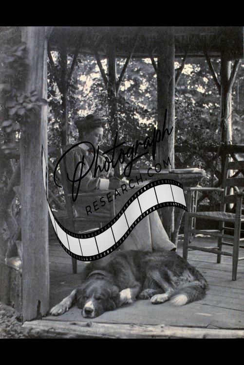 Mabel Osgood Wright,sitting,gazebo,dog,feet,pets,American author,James,c1900
