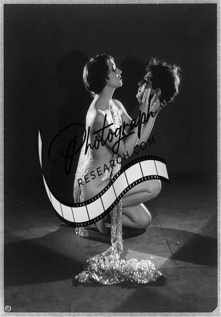 Mack Sennett comedy films,nude young woman kneeling,holding model,head,man,1919