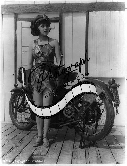 Young woman,Mack Sennett comedy films,bathing suit,policeman,hat,motorcycle,1919