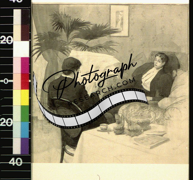 Girl leaning forward in chair,talking to a man,William Leroy Jacobs,1890-1917