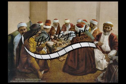Peasant Druzes of Mount Carmel eating,Holy Land,Israel