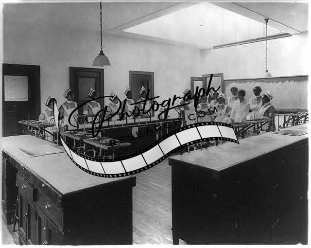 Young women,young man reading by the light of a patented lamp,1909-1932,Ad