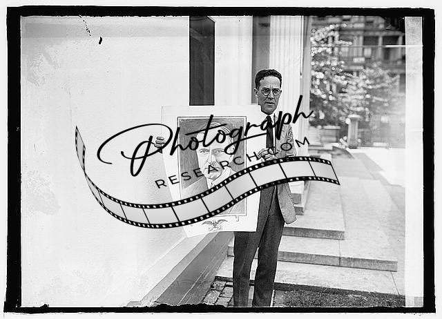 Charles H. Thompson,employee of White House with Cartoon of Coolidge,1924