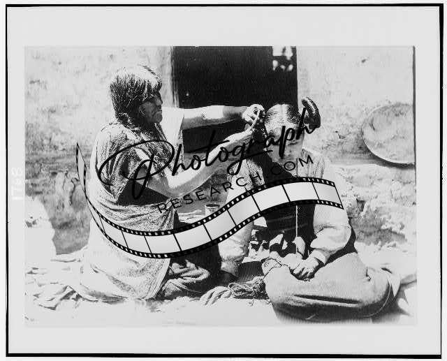 Hopi hair dresser,Indians,women,children,appearance,clothing,Arizona,AZ,c1909