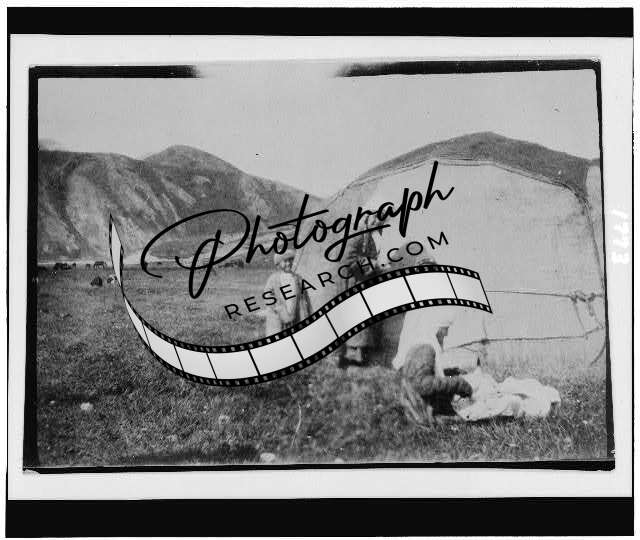 Women,children outside tent,dwelling,home,clothing,Kirghiz,Kyrgyzstan,Asia,c1900