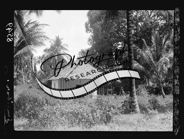 House in a grove of clove trees,palms,Zanzibar,Africa,Matson Photo Service,1936