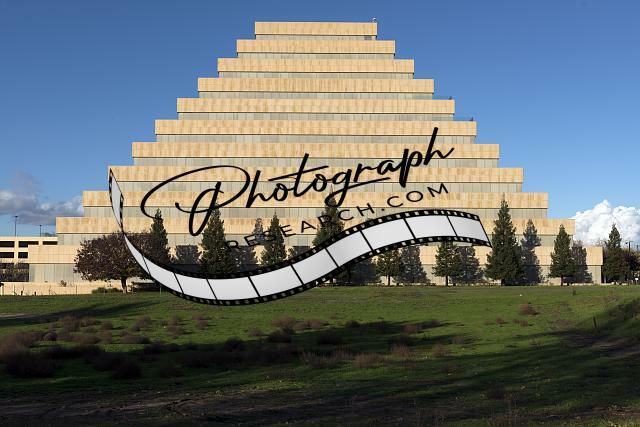 Title: The 10-story Ziggurat, a pyramidal state office building along the Sacramento River, across from downtown Sacramento, California's capital city