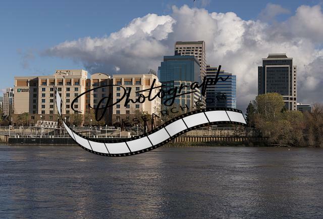 Title: The 10-story Ziggurat, a pyramidal state office building along the Sacramento River, across from downtown Sacramento, California's capital city