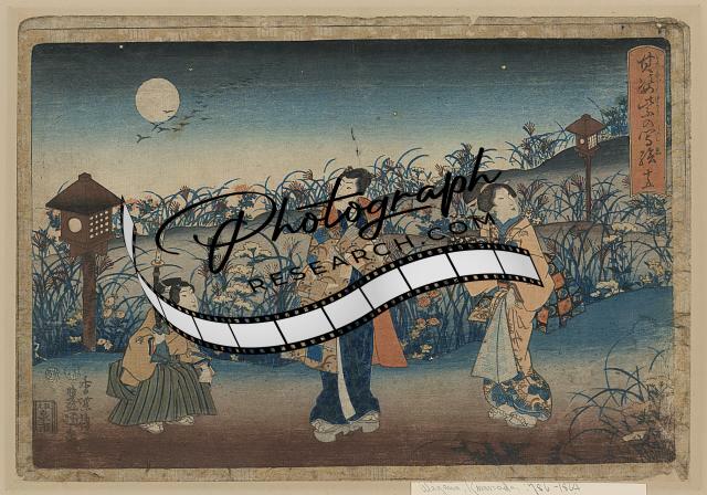 Jugo,Toyokuni Utagawa,Photo of Ukiyo-e,Japan,Moon,Lanterns,Country Life,c1850