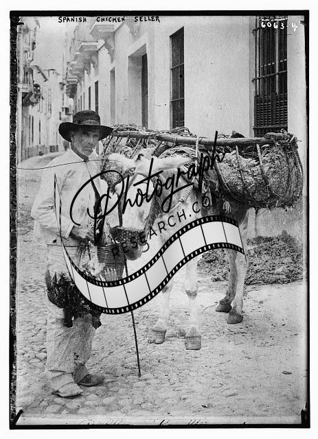 Spanish Chicken Seller,vendors,donkeys,pack animals,men,basket,Bain News Service