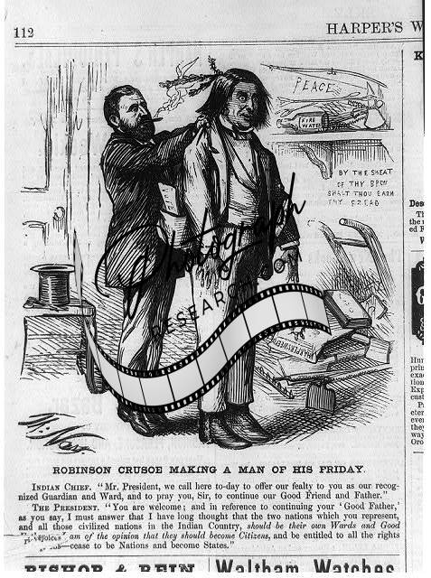 Harper's Weekly,attempts to civilize American Indian,Robinson Crusoe,1870,Grant