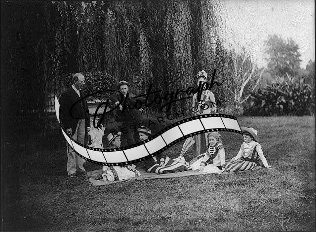 Family group on lawn by weeping willow tree,c1880,man