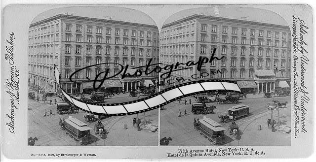 Fifth Avenue Hotel,New York,N.Y.,c1892,trolley cars,exterior view,reproduction