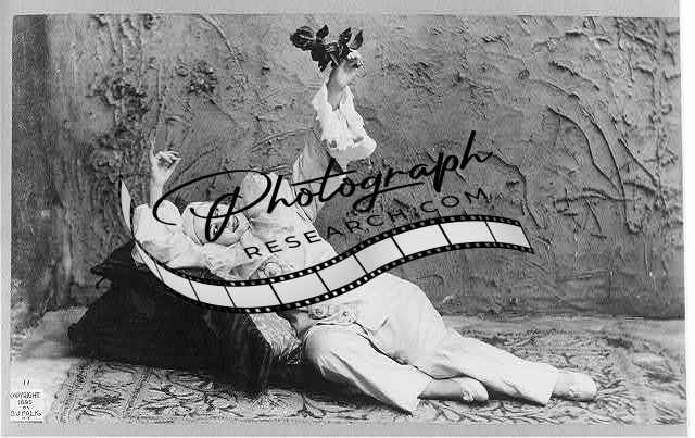 Pilar Morin as clown/mime,c1895,Holding Flower