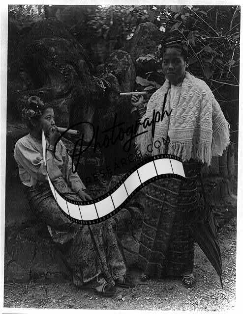 2 Philippino women holding large cigars