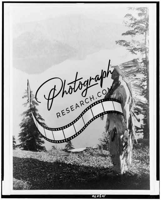 Praying,Spirits,Crater Lake,Klamath Indians,chiefs,feather headdress,OR,c1923
