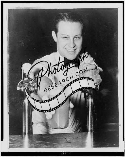'Soda jerk' passing ice cream soda between two soda fountains,Alan Fisher,1936