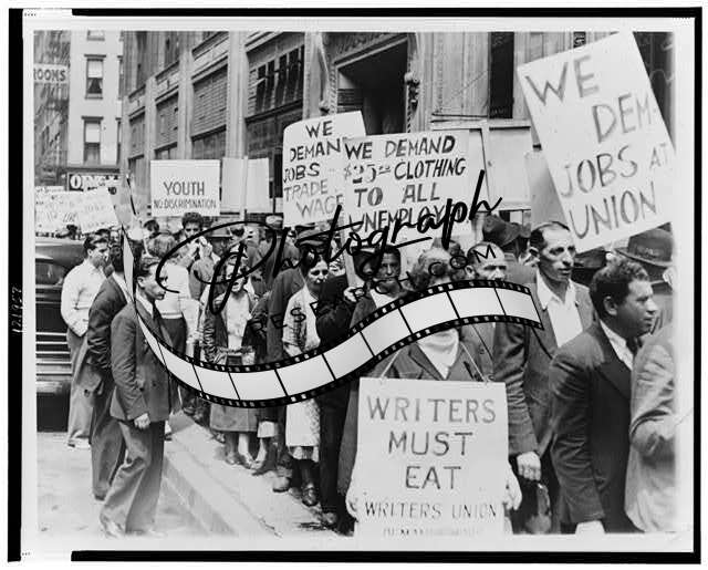 Marchers,Signs,Emergency Relief Building,New York,1935,Unemployed Demonstration