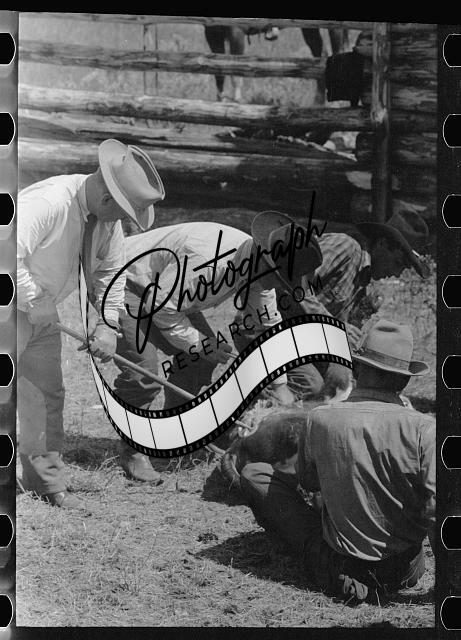 Branding calves,cattle,cowboys,Western life,CO,c1898