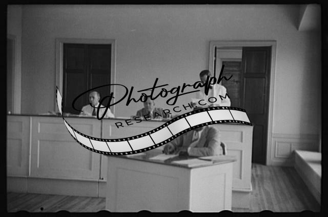 Men,offices,desks,tables,paperwork,portrait photographs,1935