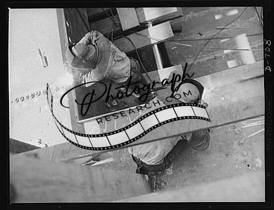Newport News,Virginia. Electro-welder working on a hatch combing