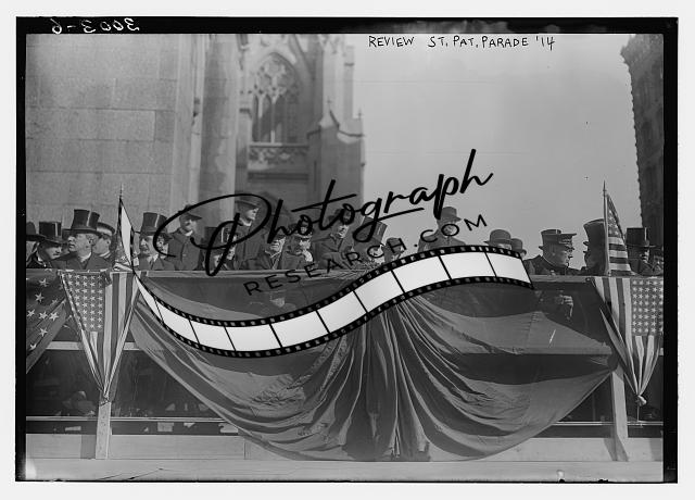 Review Stand,St. Patrick's Parade 1914,holiday,people,American flags