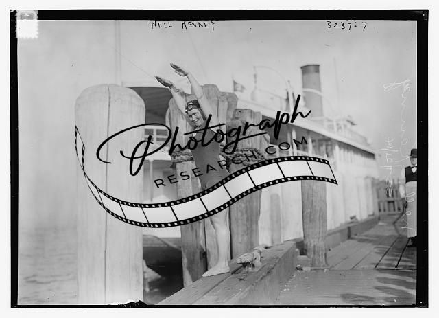 Nell Kenney,woman,bathing suit,dive off dock,swimming,Bain News Service