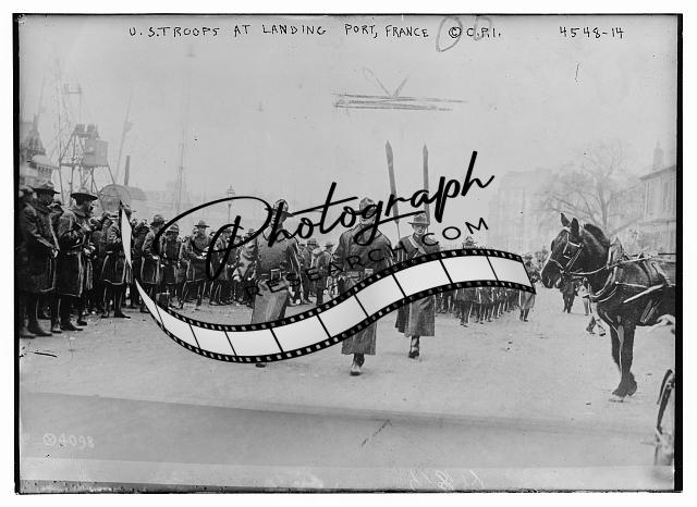 U.S. troops at landing port,France,Military,horse,men,Bain News Service,soldiers