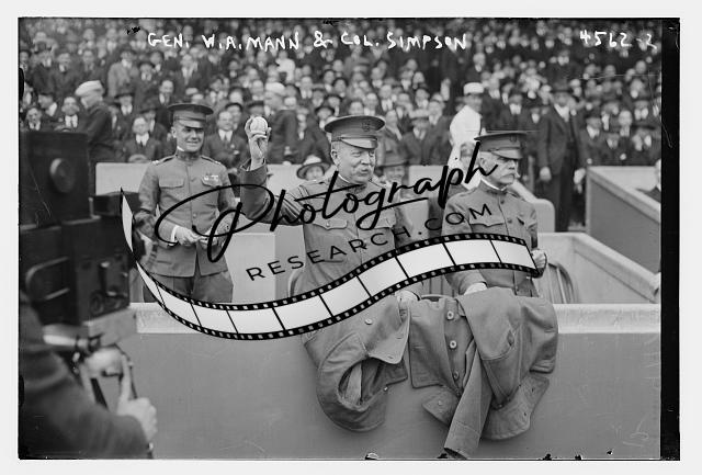 General W.A. Mann,Colonel Simpson,throwing out ball at Giants home opener,1918