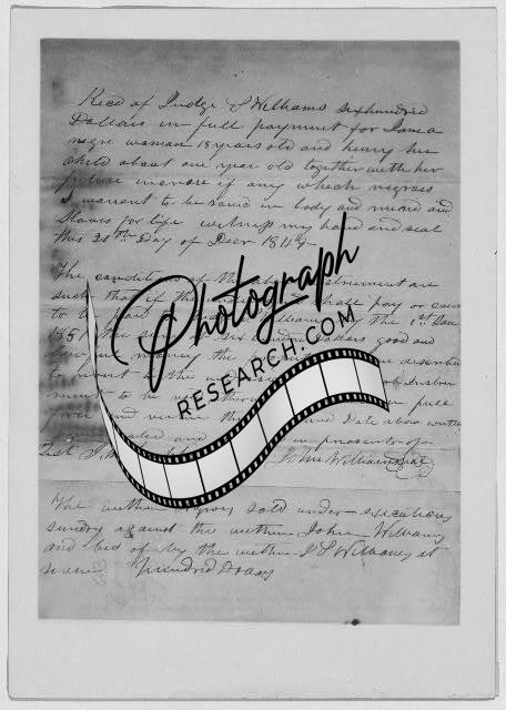 Photo of Receipt for Sale,Jane,Age 18,Her son,Henry,Age 1,1849,Slavery,Alabama