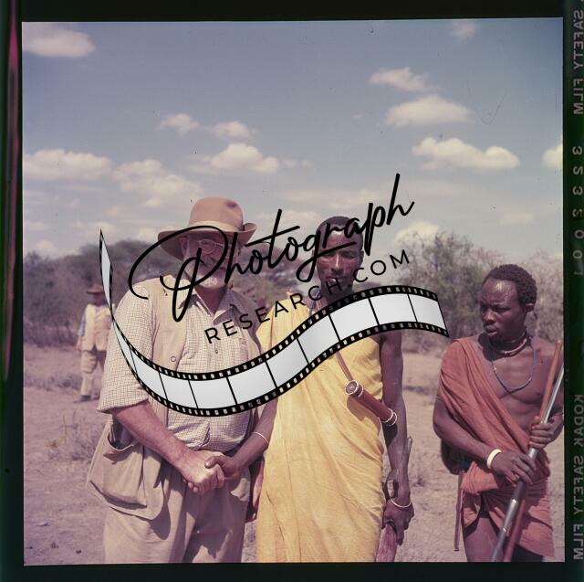 Ernest Hemingway,with two African men,during an African safari